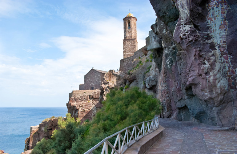 La chiesa del Patrono di Castelsardo (Costa Nord Sardegna, golfo dell'Asinara, Sassari) sorge a strapiombo sul mare e custodisce una magnifica e antica opera del Maestro di Castelsardo